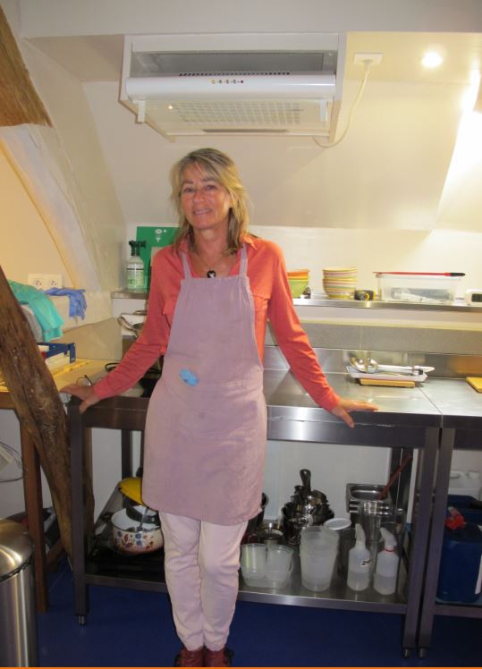 Sa production est totalement artisanale. Les savons sont faits entièrement à la main avec des huiles végétales bio (argan, olive, karité, coco), des huiles essentielles nobles et des plantes de son jardin (menthe, ortie, sauge, romarin, verveine, calendula, lavande, pommes) cueillies à la main, séchées au soleil et à l'air puis macérées. Elle utilise aussi les produits de ses ruches : miel et cire d'abeilles. D'autres senteurs sont soigneusement sélectionnés, cacao, vanille...