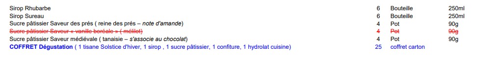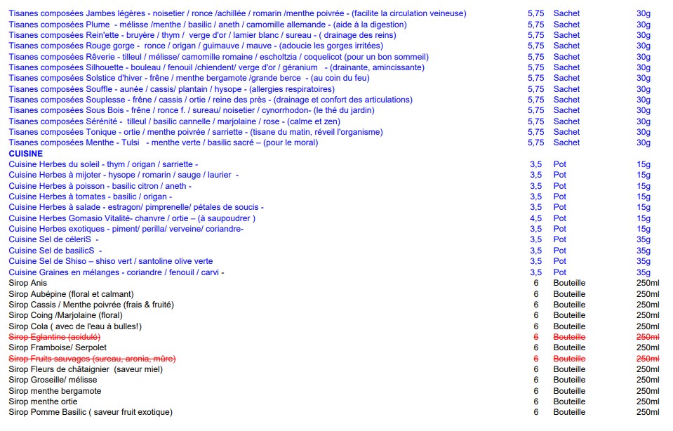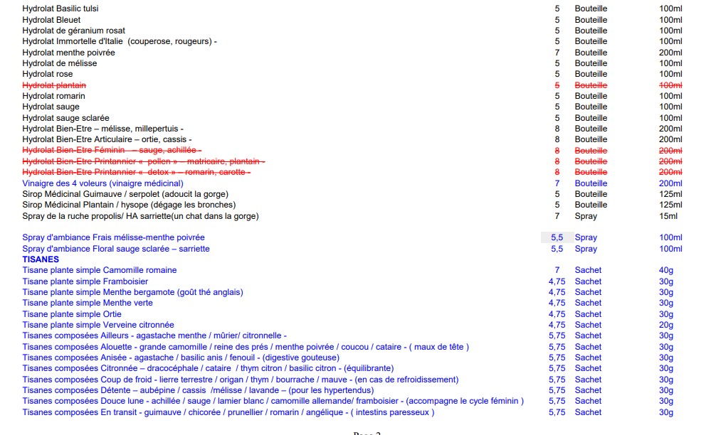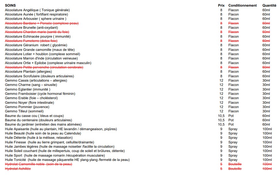 LISTE DES PRODUITS et TARIFS Décembre 2025