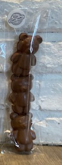Il nous les propose en sachets de 3 oursons (noir ou lait) poids du sachet 60g.