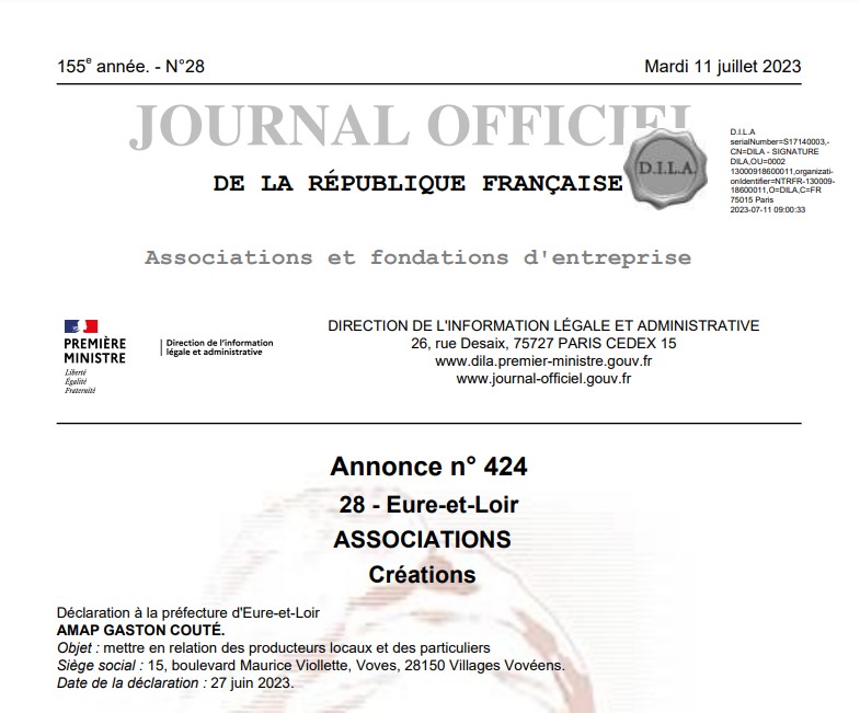 Cette fois c'est officiel : l'AMAP Gaston Couté de Voves est officiellement déclarée ouverte depuis le 27 juin 2023