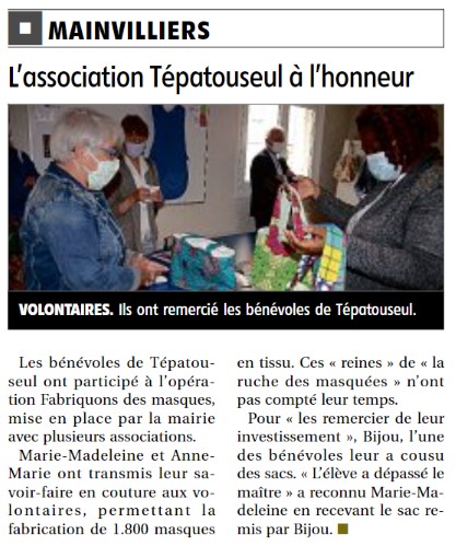 Nos amis de Tépastoutseul de Mainvilliers (qui avaient accueillis nos distributions ce printemps : lire notre reportage de l'époque) à l'honneur une fois encore pour leur esprit de solidarité !